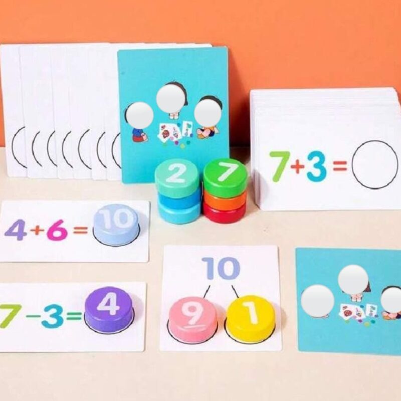 This number learning game allows players to learn numbers 1-10 and recognize numbers and understand the relationship between number and quantity, color identification skills as well as learn simple addition and subtraction. It also enriches the child imagination & stimulates children’s logical thinking. This set includes: 10 number flashcards 30 two-sided addition, and subtraction…