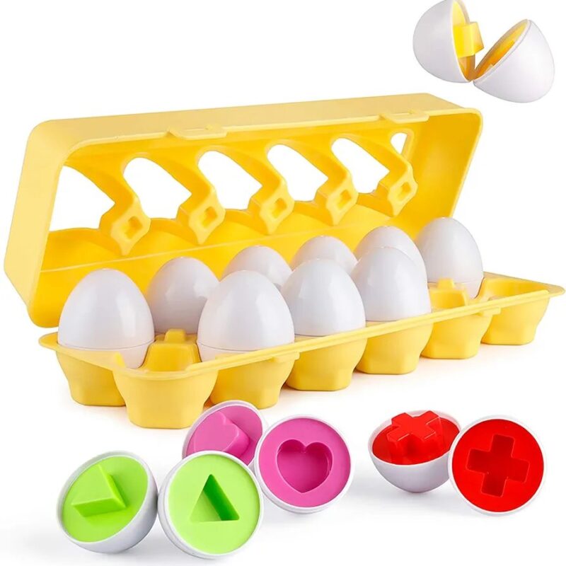 Features & details Egg-ceptional Toy:Each package contains 12 white eggs that opened to colorful interiors with an embossed shape and a corresponding color. Made with top quality child-safe materials, smooth and unbreakable. The carton measures 11.8×3.9×2.7in, weigh 14.07oz. Realistic Toy Eggs: Each plastic egg contains a different color and shape, making them very visible. Working…